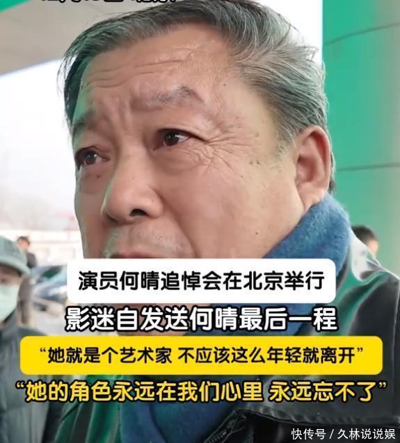 记者询问影迷对何晴的看法,一位老者眼眶含泪接受了采访。