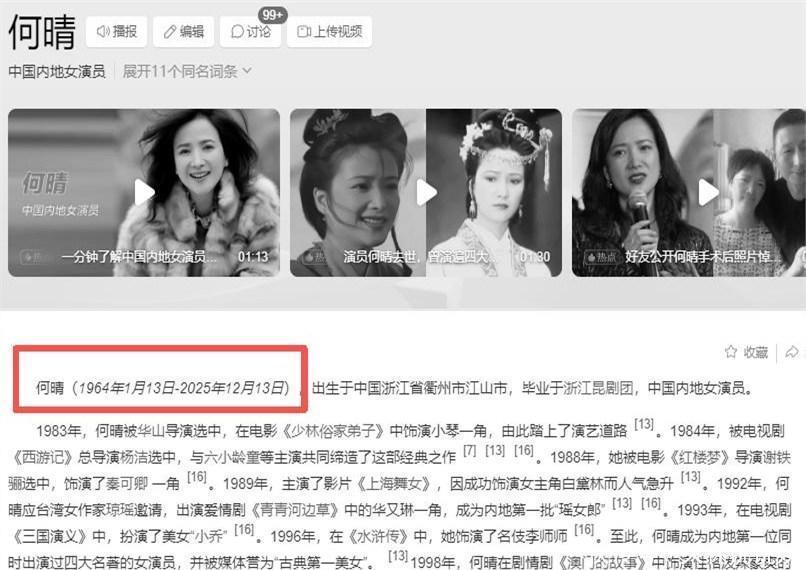 不久,何晴百度词条变为灰色,她的时间永远停在了2025年12月13日。